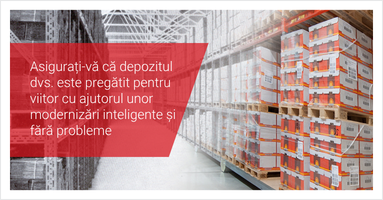 Produse utilizate: Rafturi HI280, pregătite pentru a fi supratejate, rafturi pentru paleți P90, protecții de siguranță